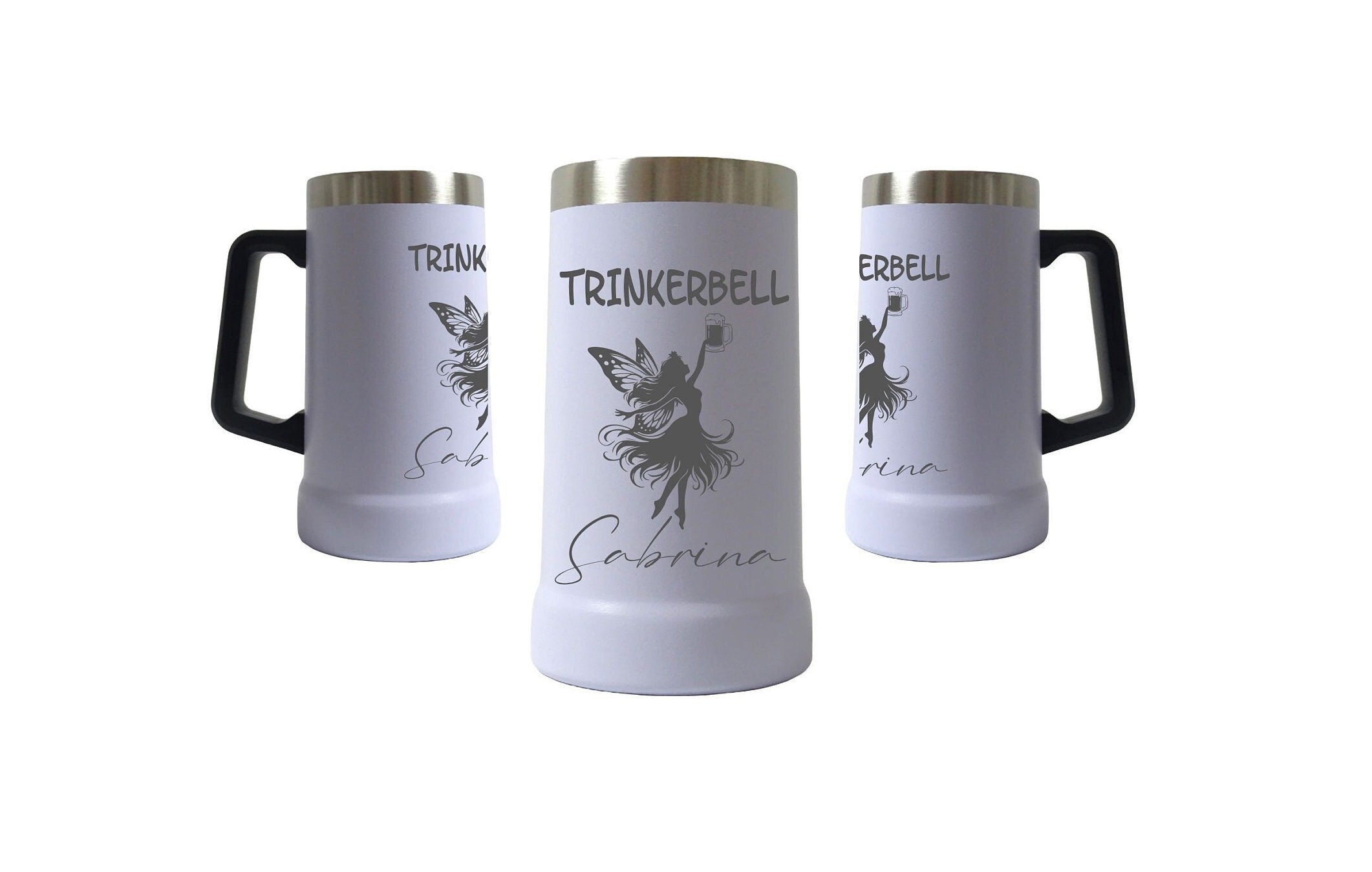 Laser engraved stainless steel beer mug - Drinkerbell - Personalized
