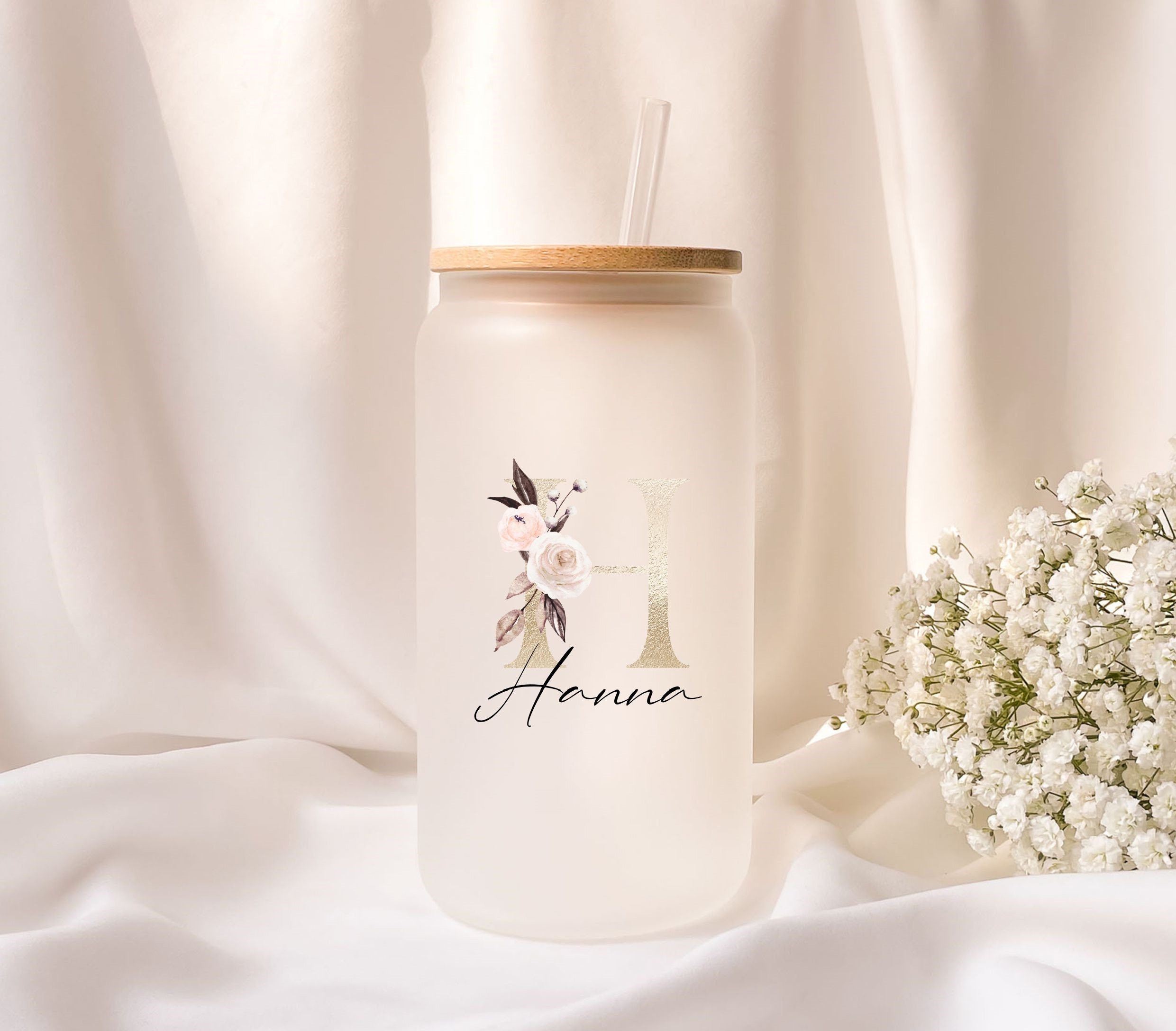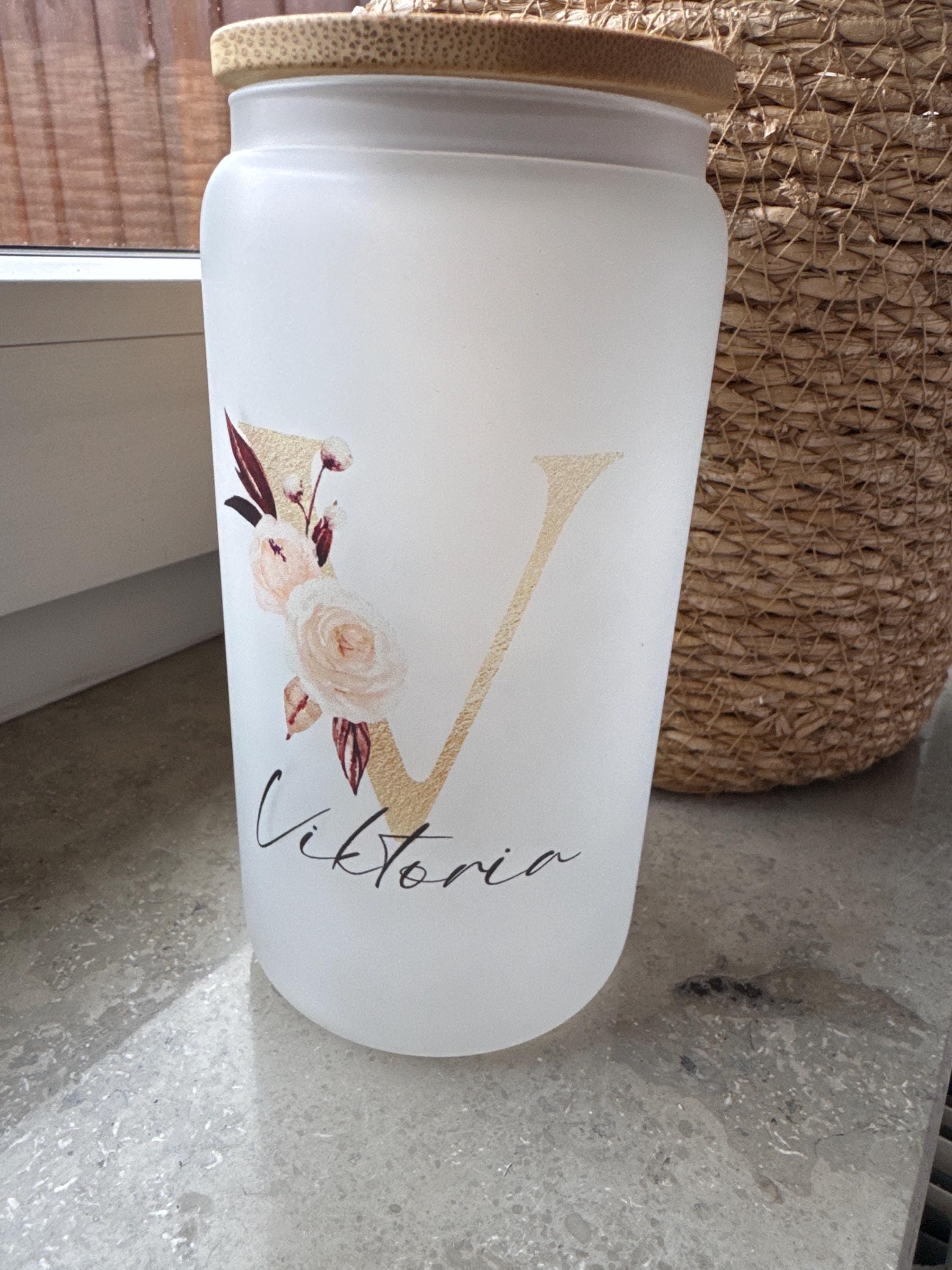 This unique frosted glass with a capacity of 470 ml comes with a beautiful light brown bamboo lid and a transparent reusable plastic drinking straw. The bamboo lid is provided with a rubber ring for sealing, which ensures a firm hold and protection against leaks.