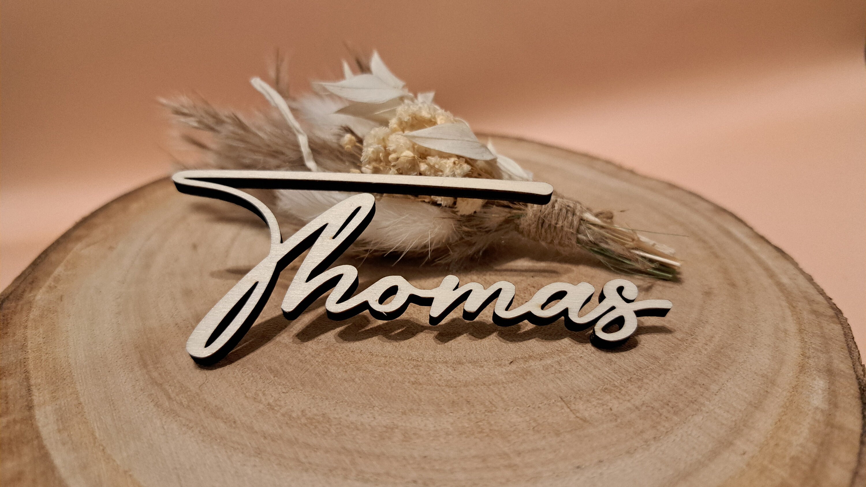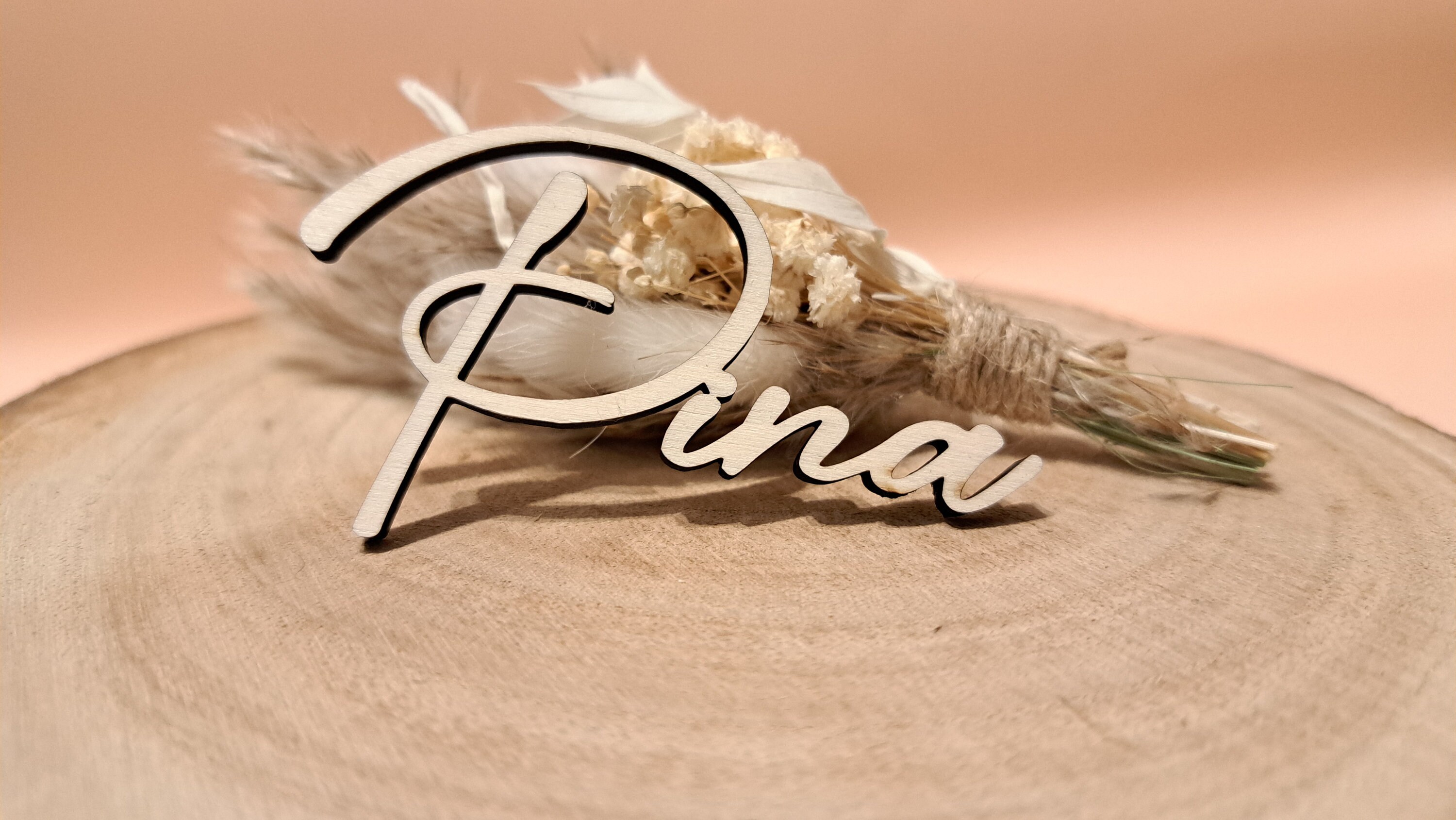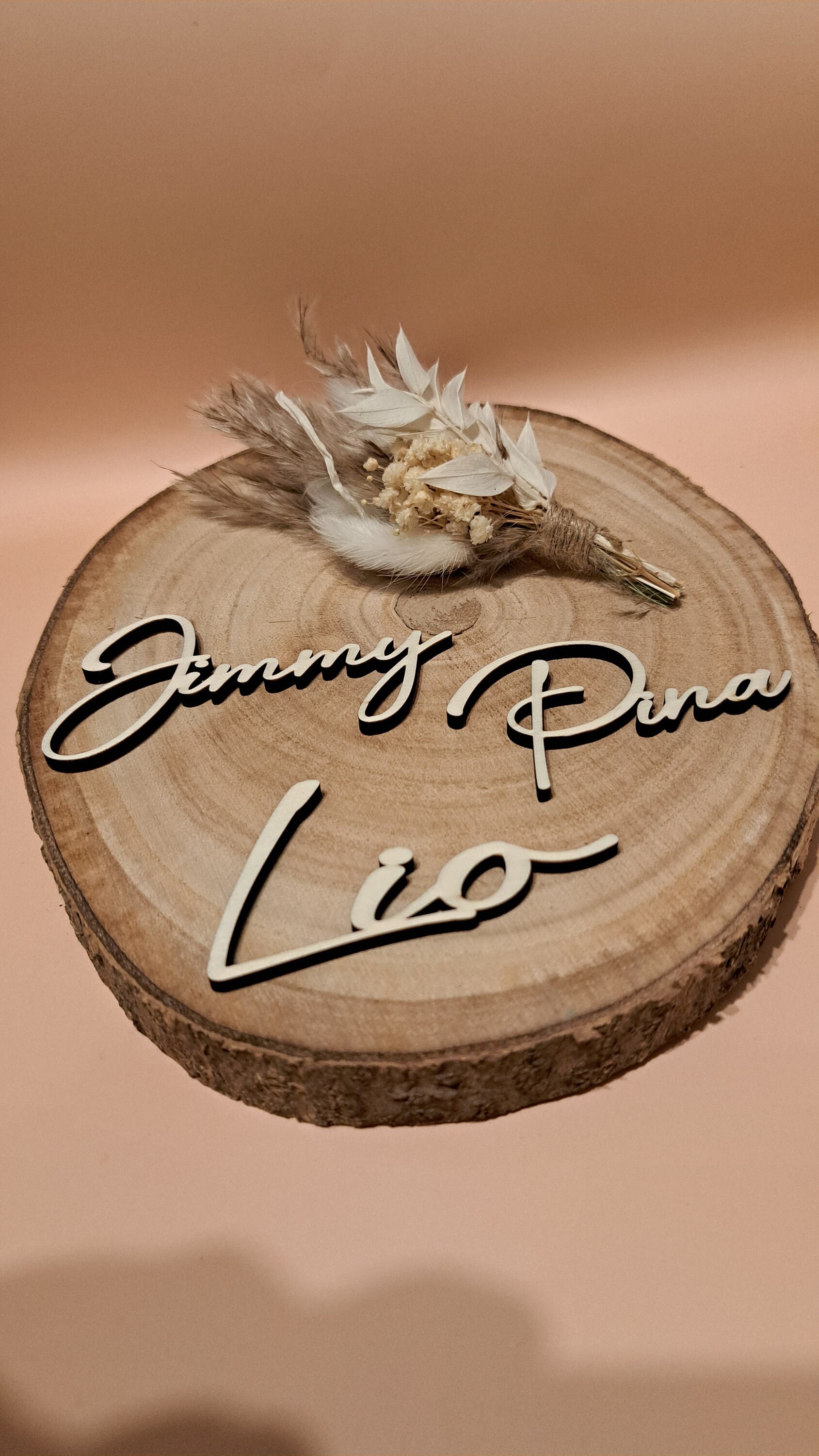 and not only give your decoration a special touch, they can also serve as a place finder for name cards and as party favors. Choose between different colors or write us a message with your desired idea. We adapt the wooden names to your decoration.