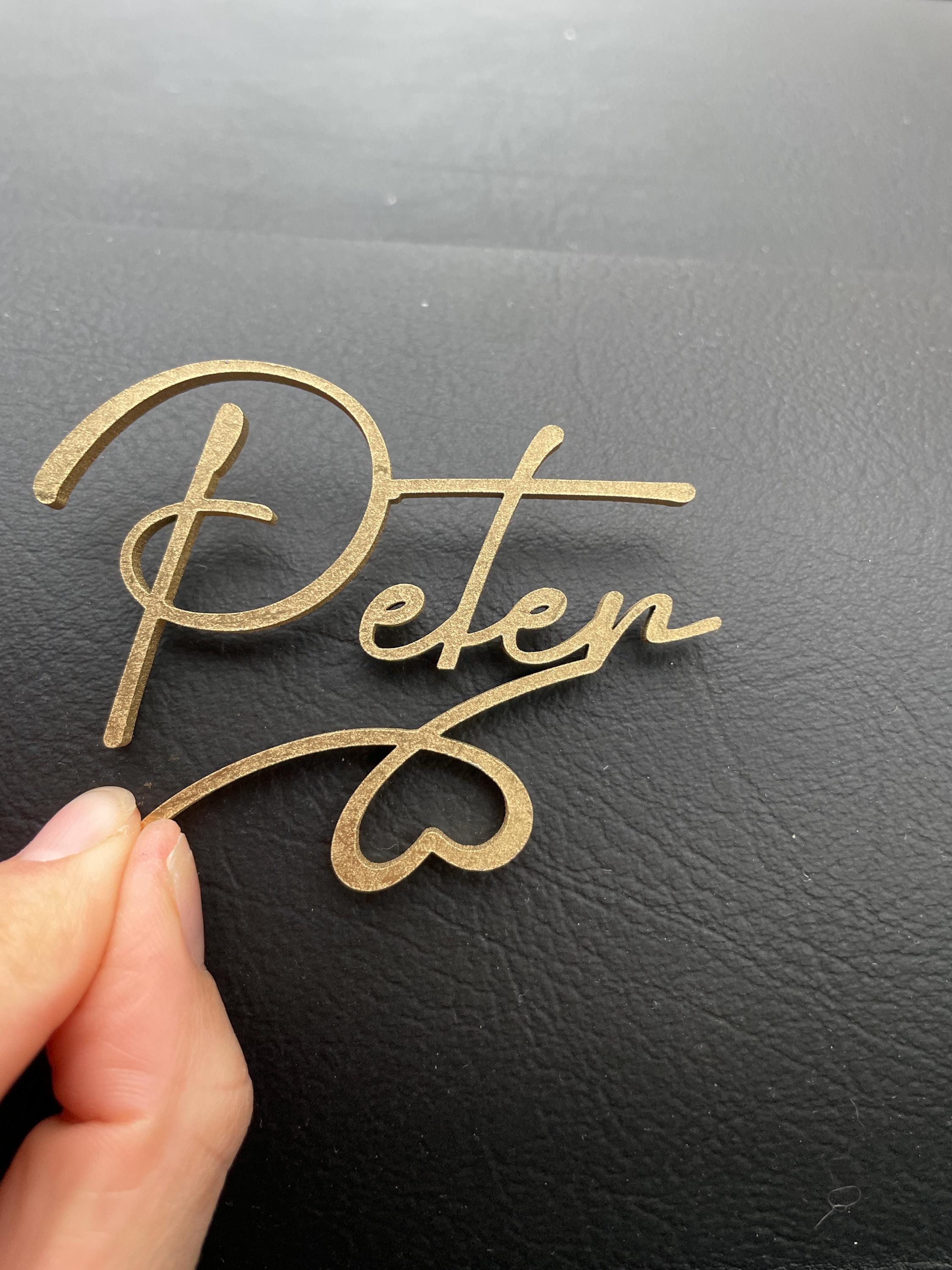 Dimensions approx. 7-10 cm (depending on the length of the name) but can be changed upon request. Thickness 3mm