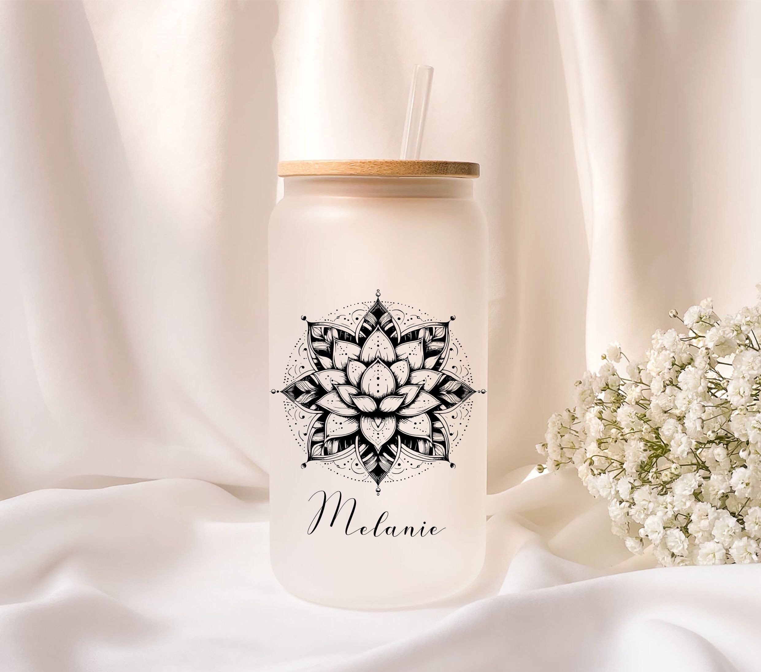 Iced coffee glass | Personalized | Mandala | Frosted glass | Gift