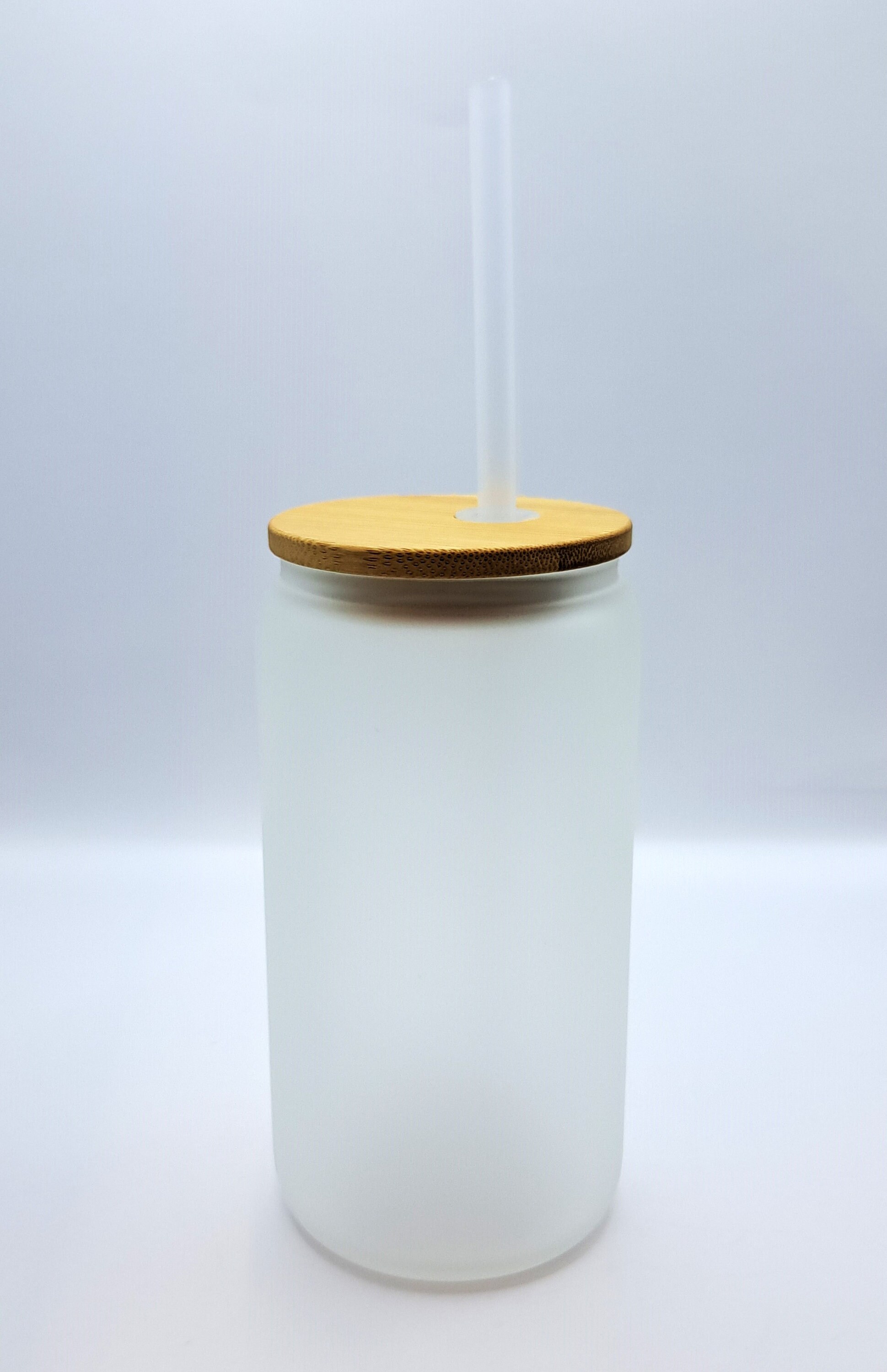 This unique frosted glass with a capacity of 470 ml comes with a beautiful light brown bamboo lid and a transparent reusable plastic drinking straw. The bamboo lid is provided with a rubber ring for sealing, which ensures a firm hold and protection against leaks.