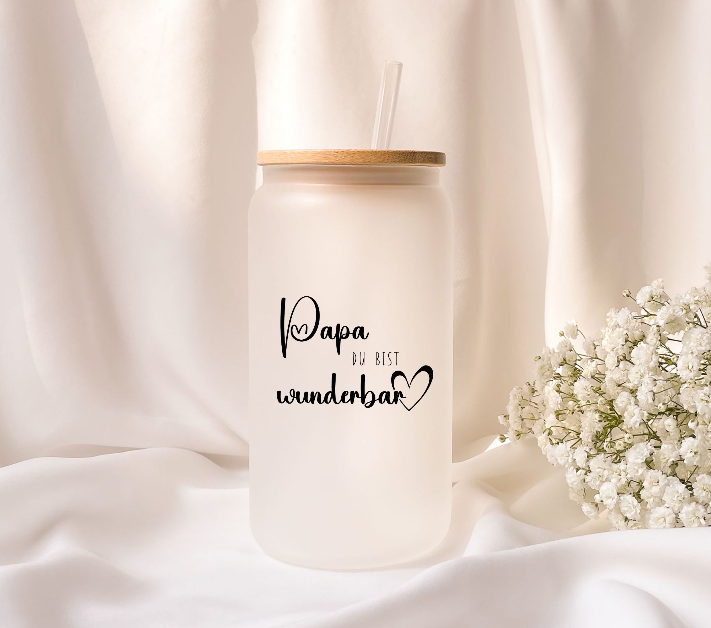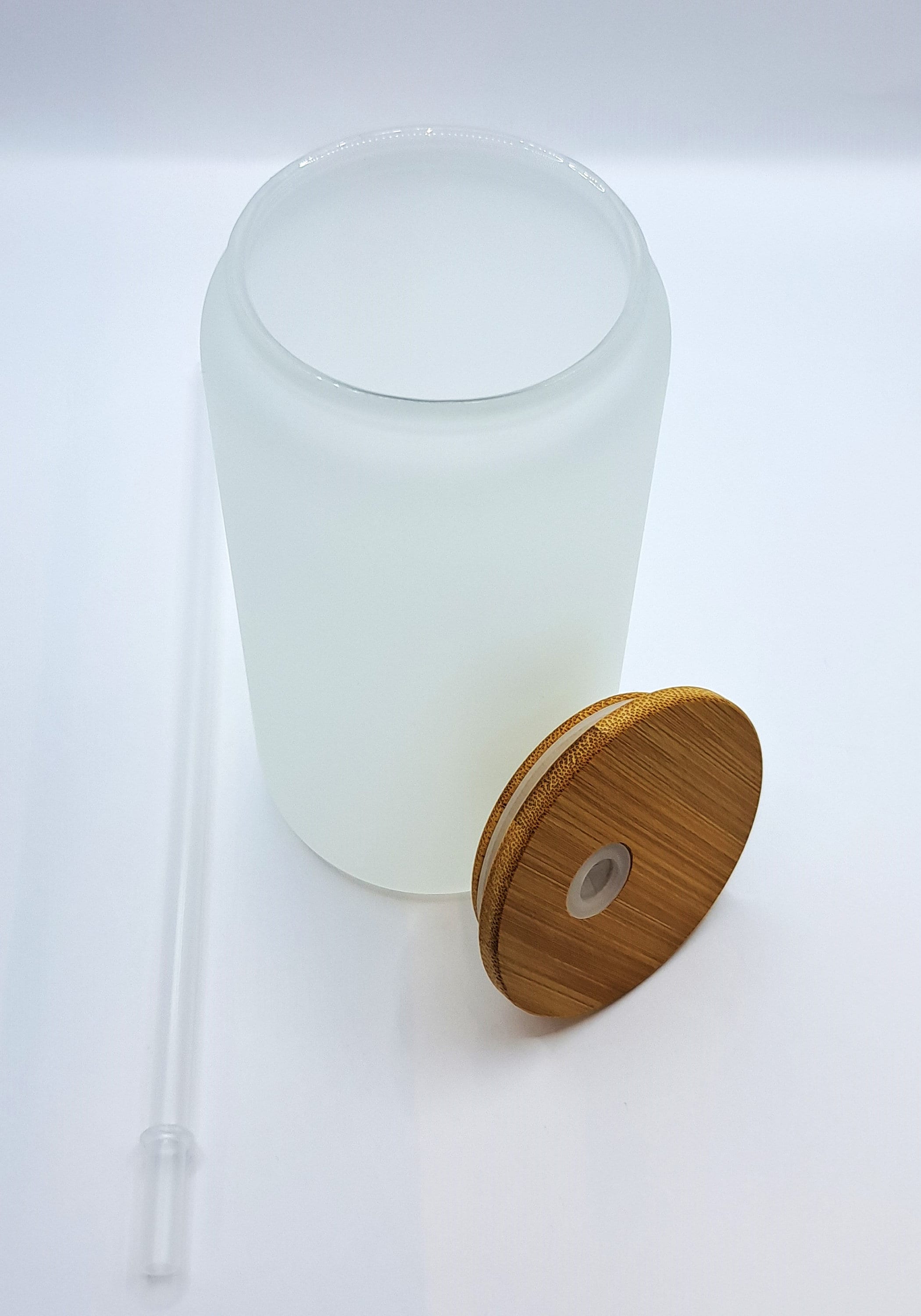 This unique 470ml frosted glass comes with a beautiful light brown bamboo lid and a clear reusable plastic drinking straw. The bamboo lid is equipped with a rubber ring for sealing, which ensures a firm hold and leak protection.