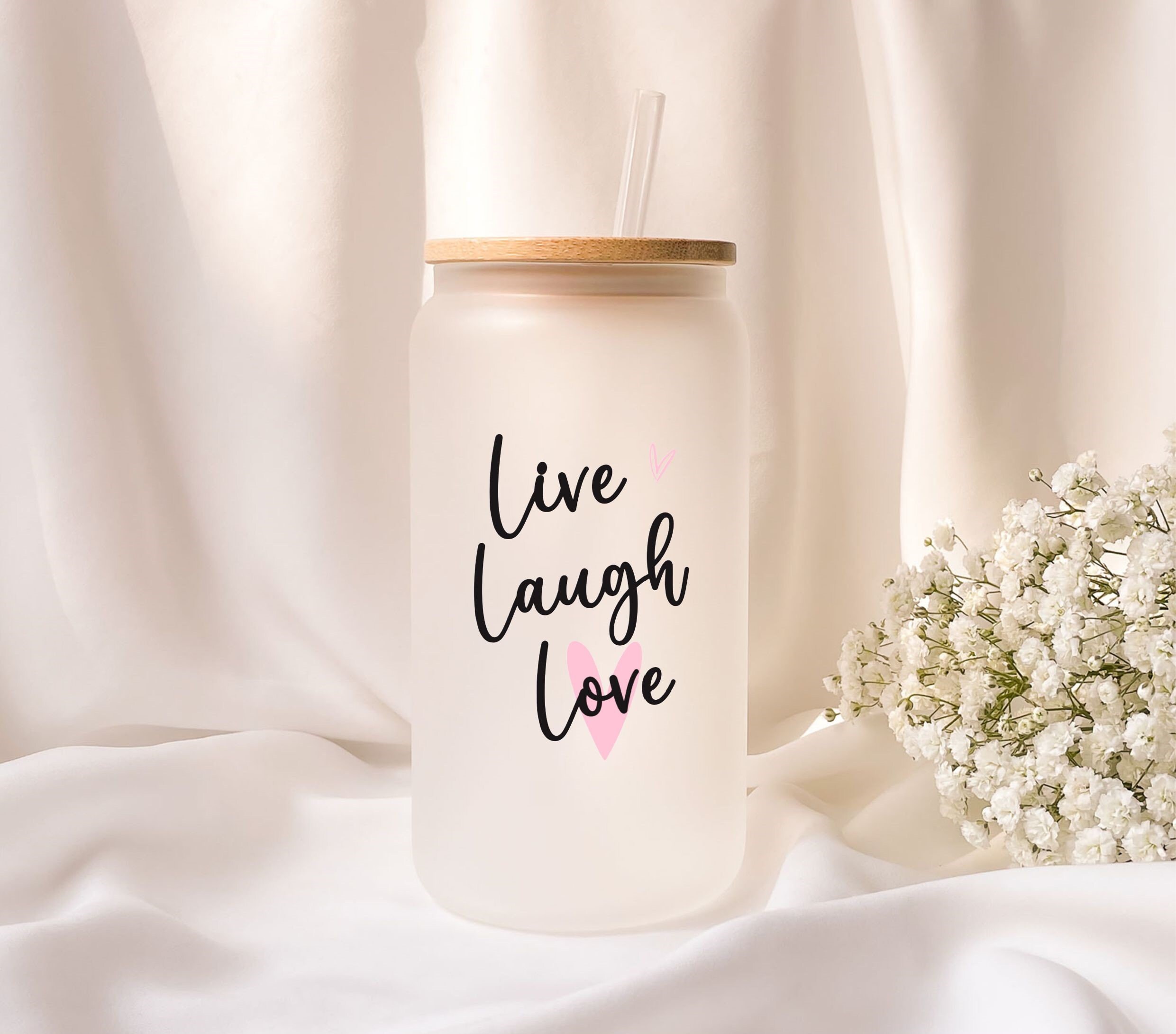 Iced Coffee Glass | Personalized | Frosted Glass | Live Laugh Love