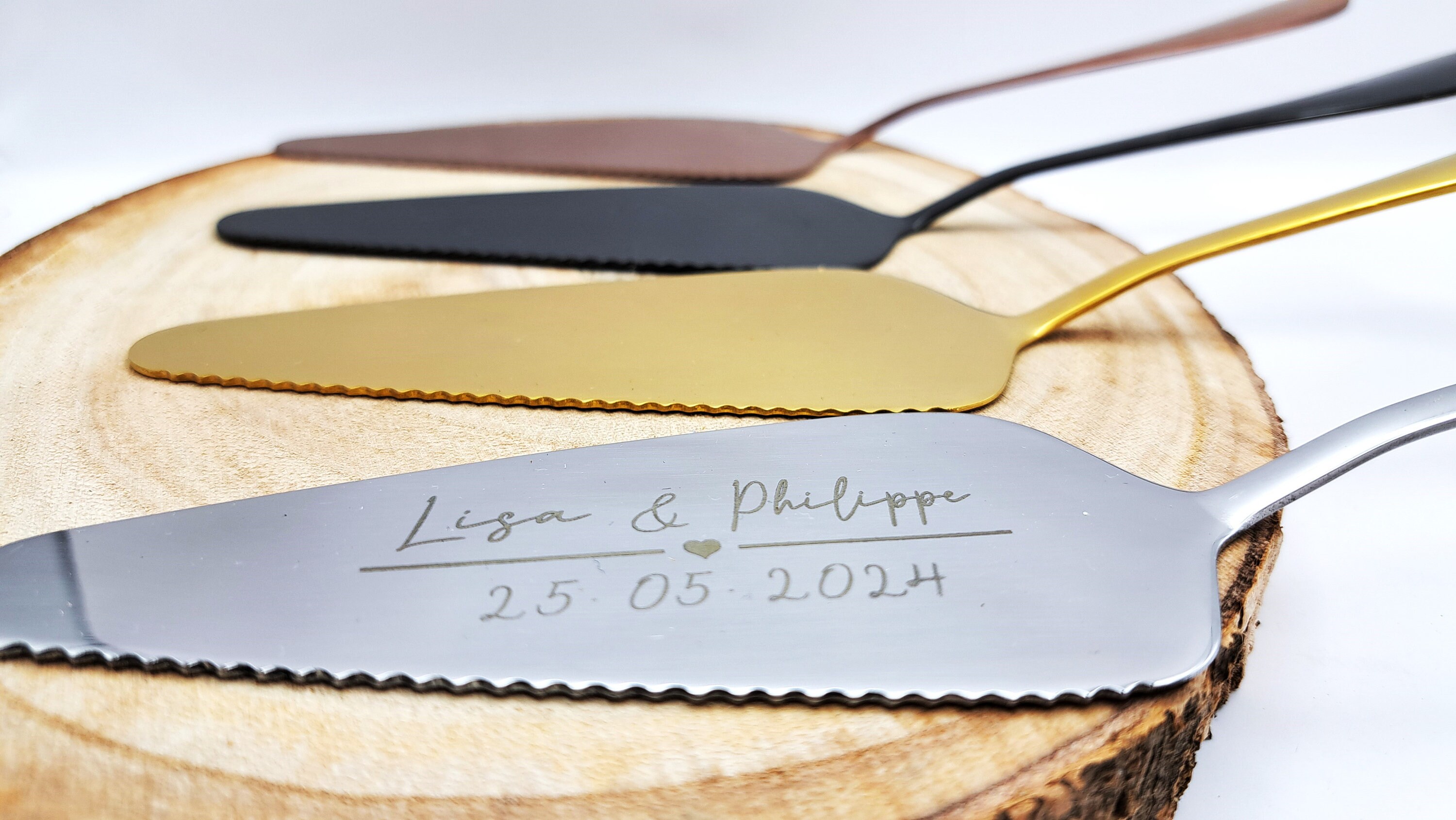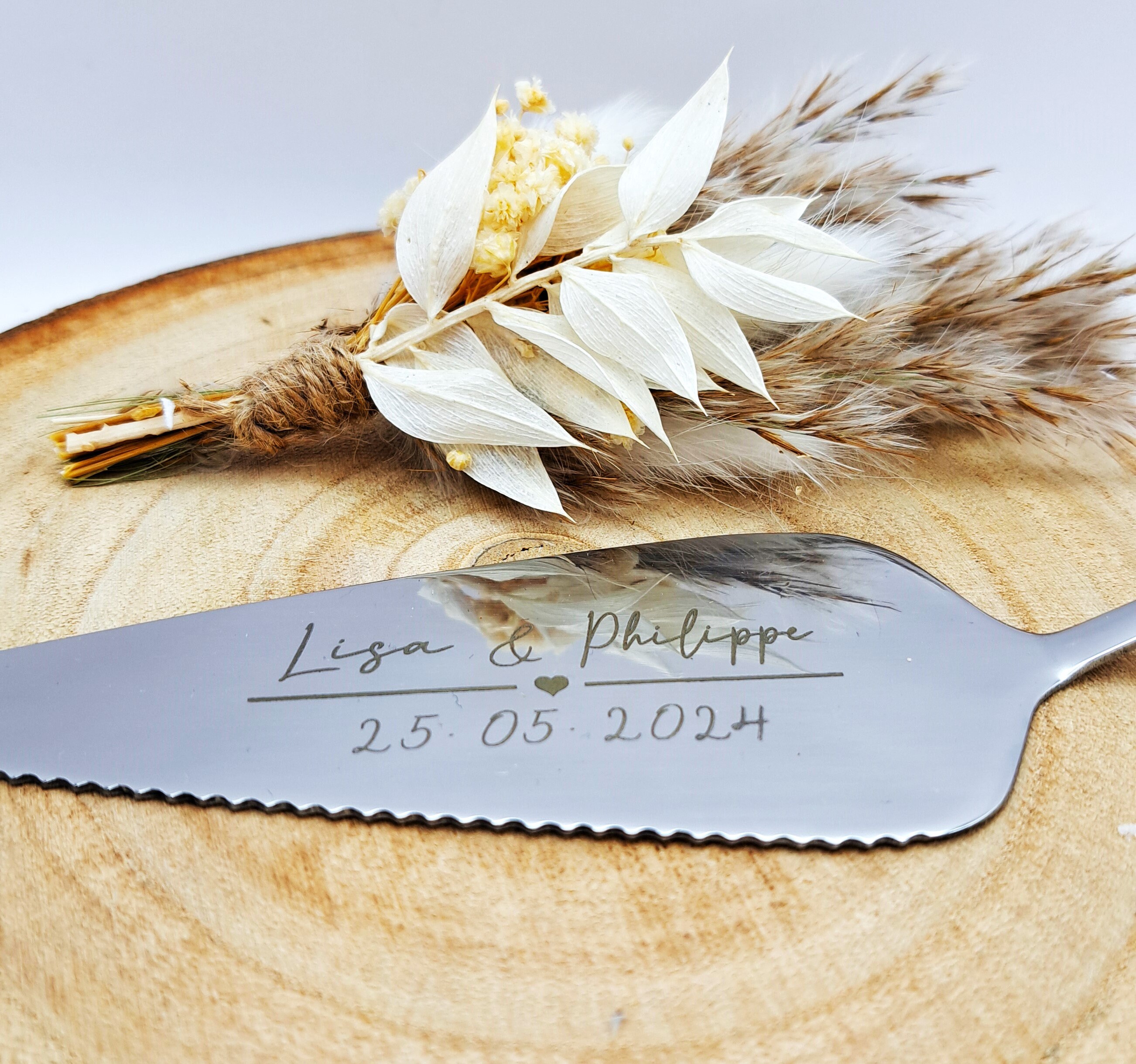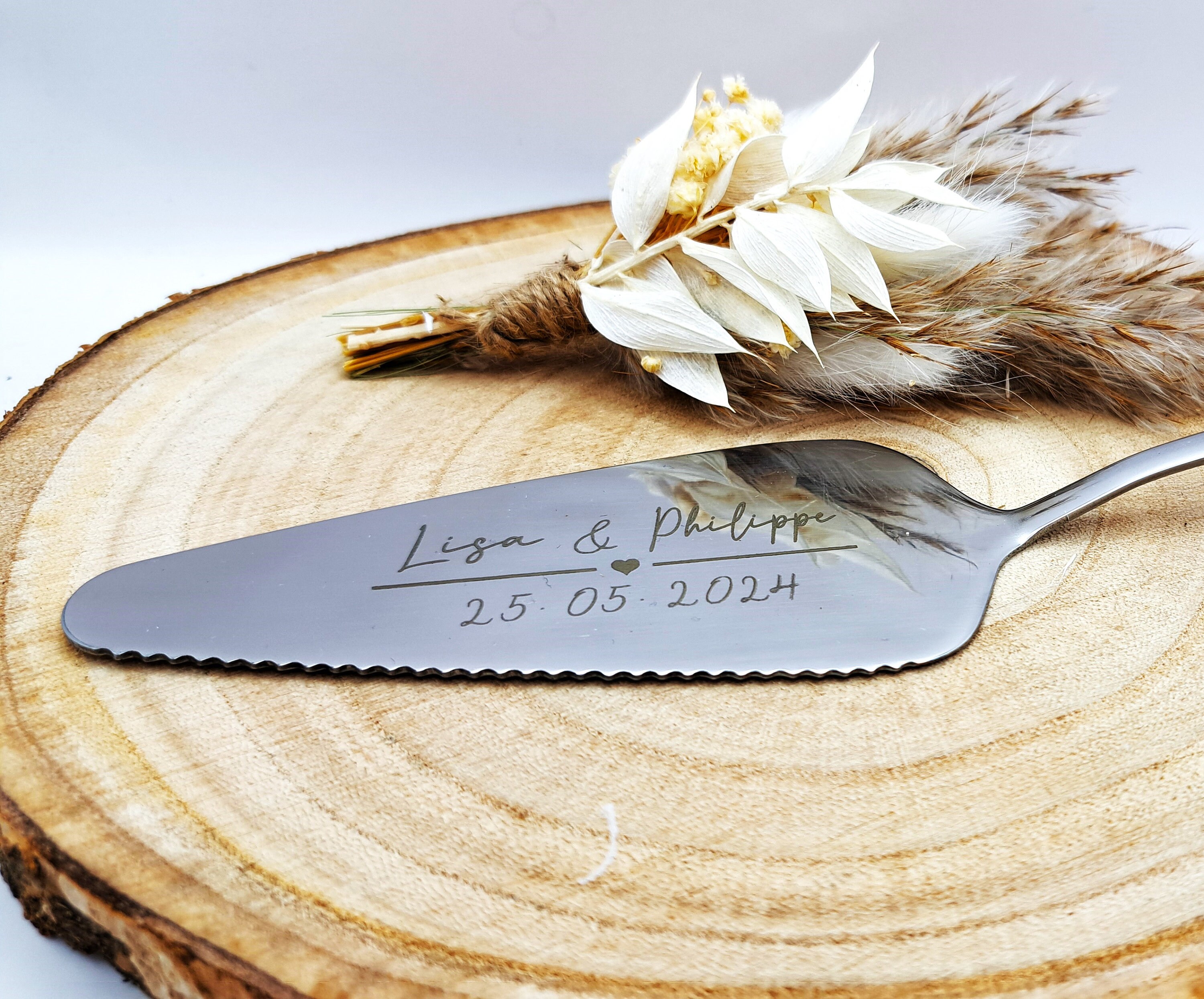 Laser-engraved stainless steel cake serverLength: 22.5 cmWidth: 4.5 cm