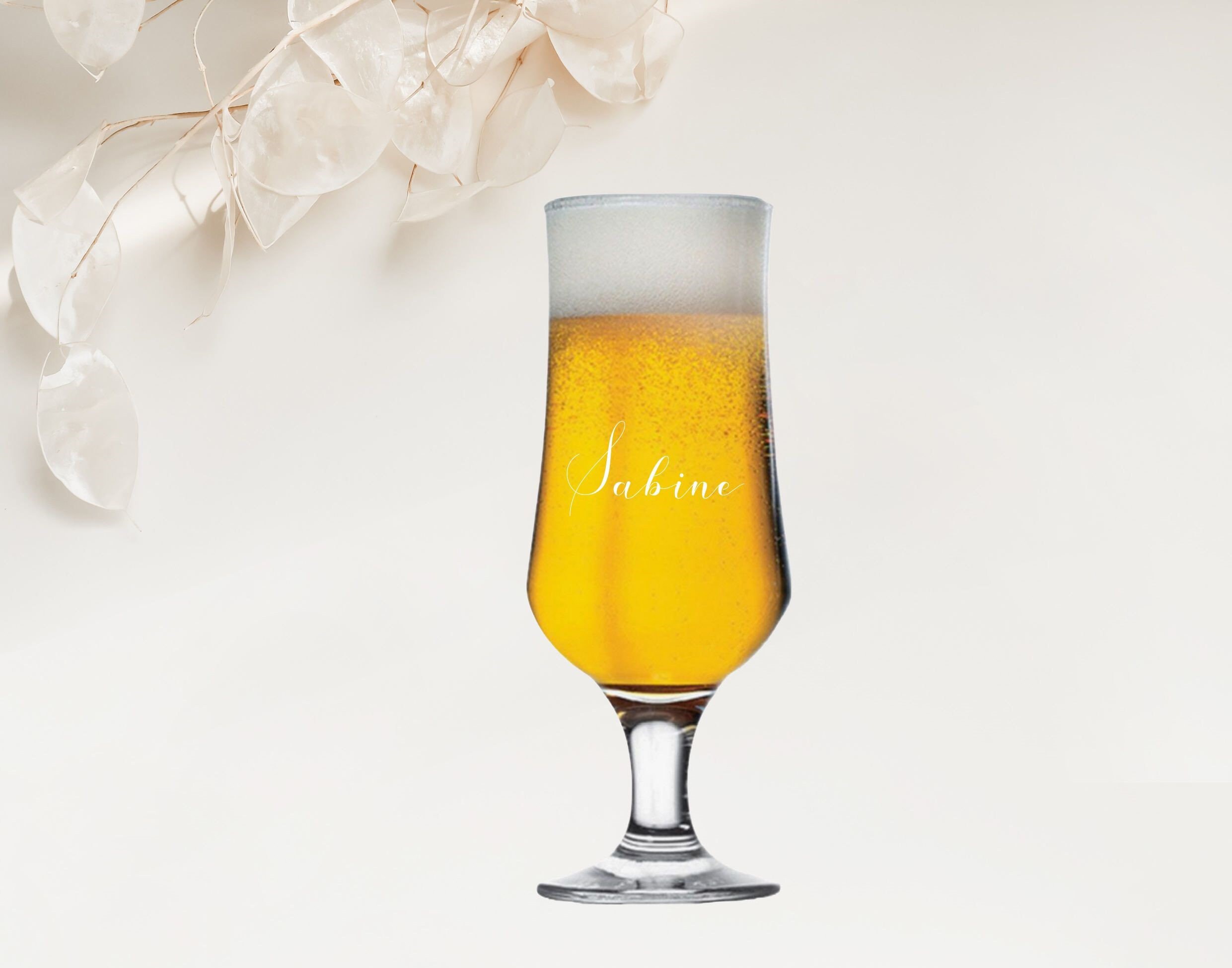 A beautiful and simple personalized beer glass, its laser engraving makes a stylish impression. This beer glass is perfect for all beer lovers, whether for Father's Day, a birthday, or just as a small gift. The double-sided engraving makes it a real eye-catcher from any angle.
