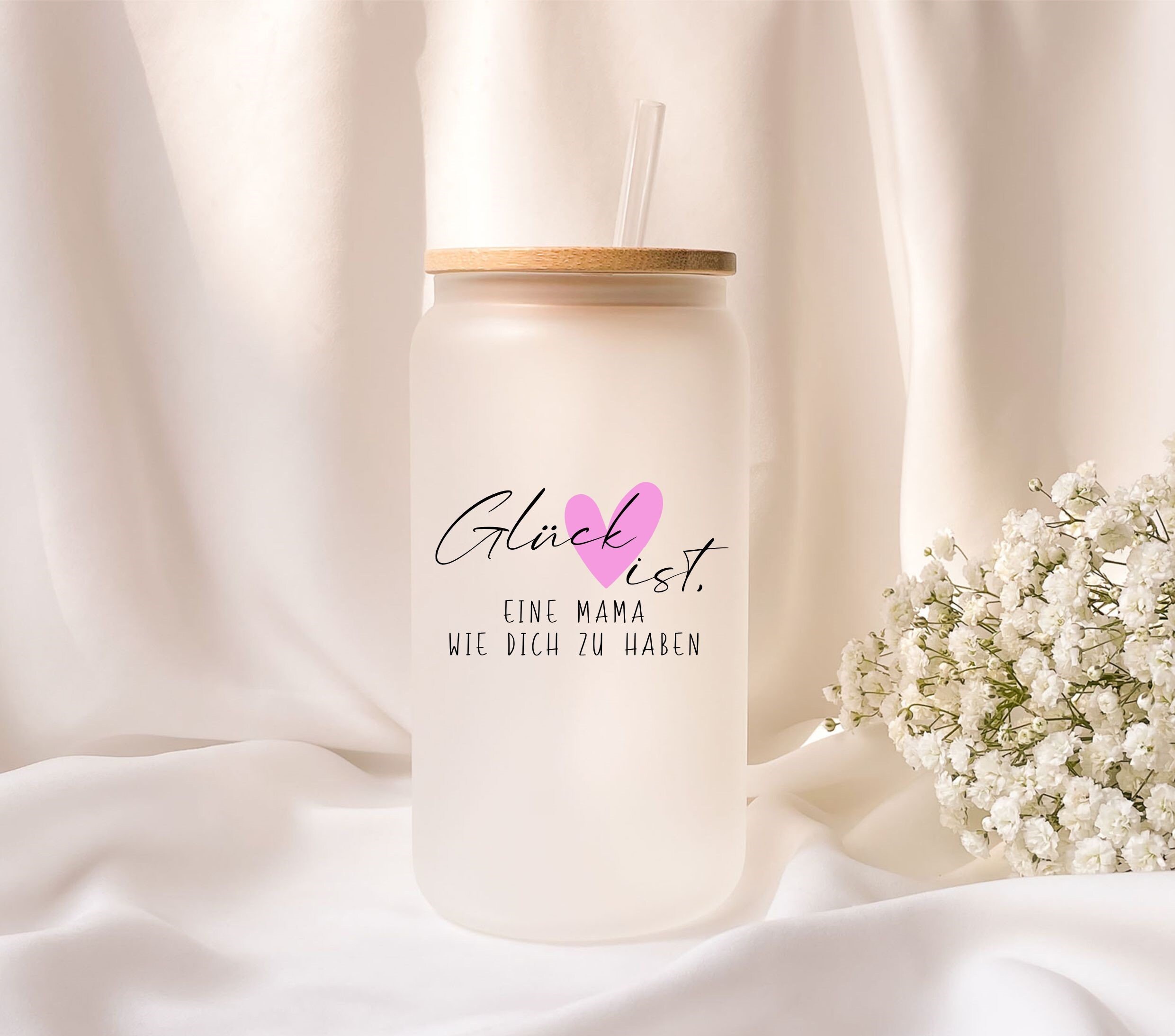 Frosted glass with bamboo lid, personalized