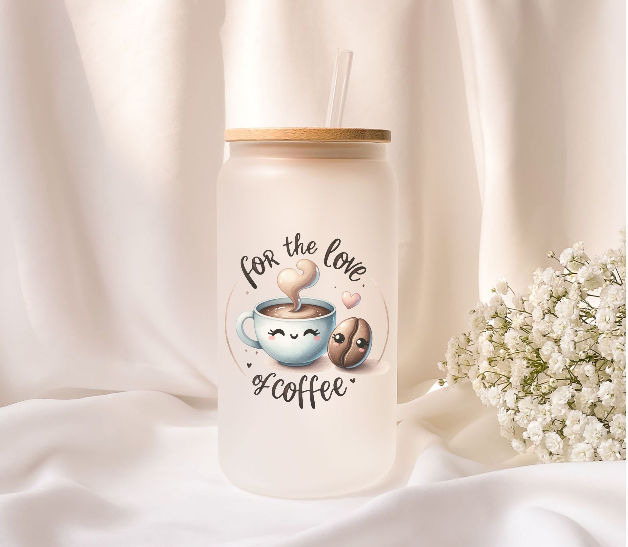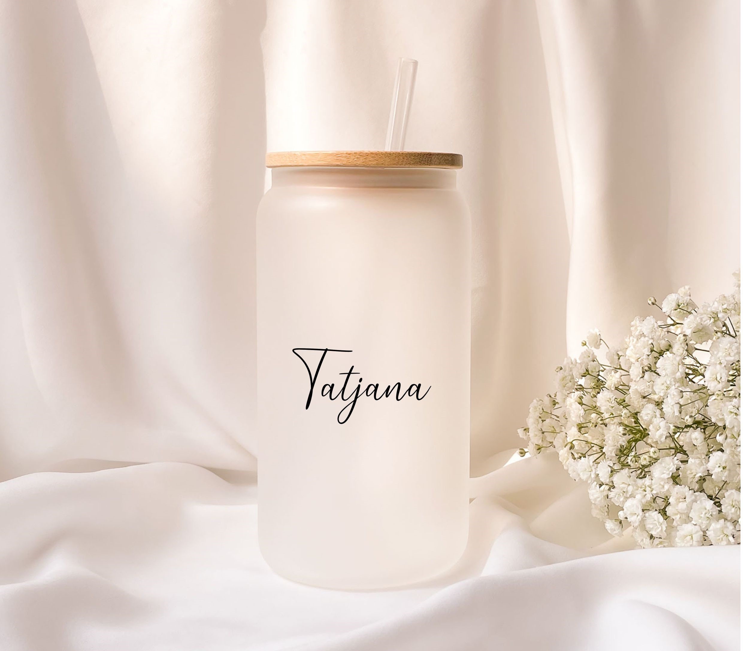Frosted glass with bamboo lid, personalized