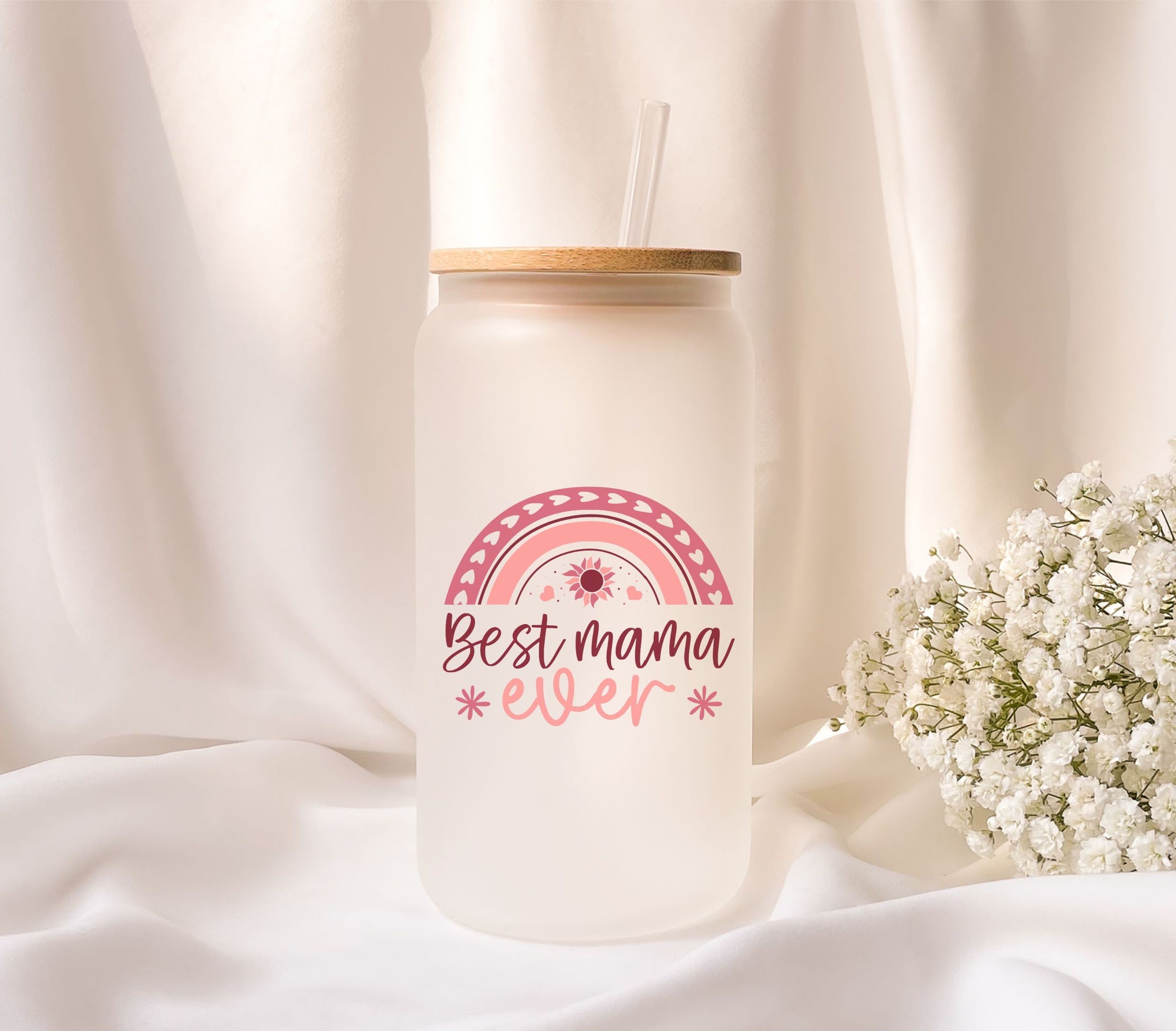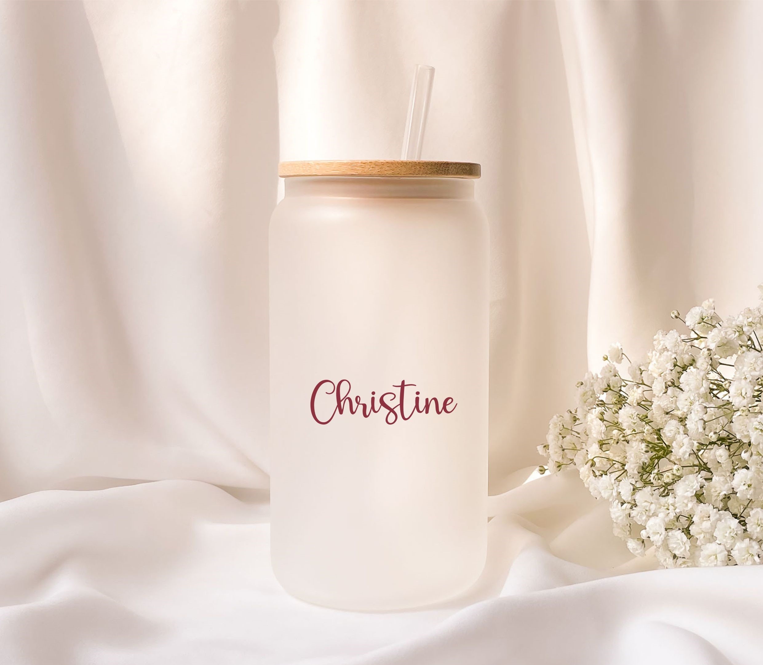This unique 470ml frosted glass comes with a beautiful light brown bamboo lid and a clear reusable plastic drinking straw. The bamboo lid is equipped with a rubber ring for sealing, which ensures a firm hold and leak protection.