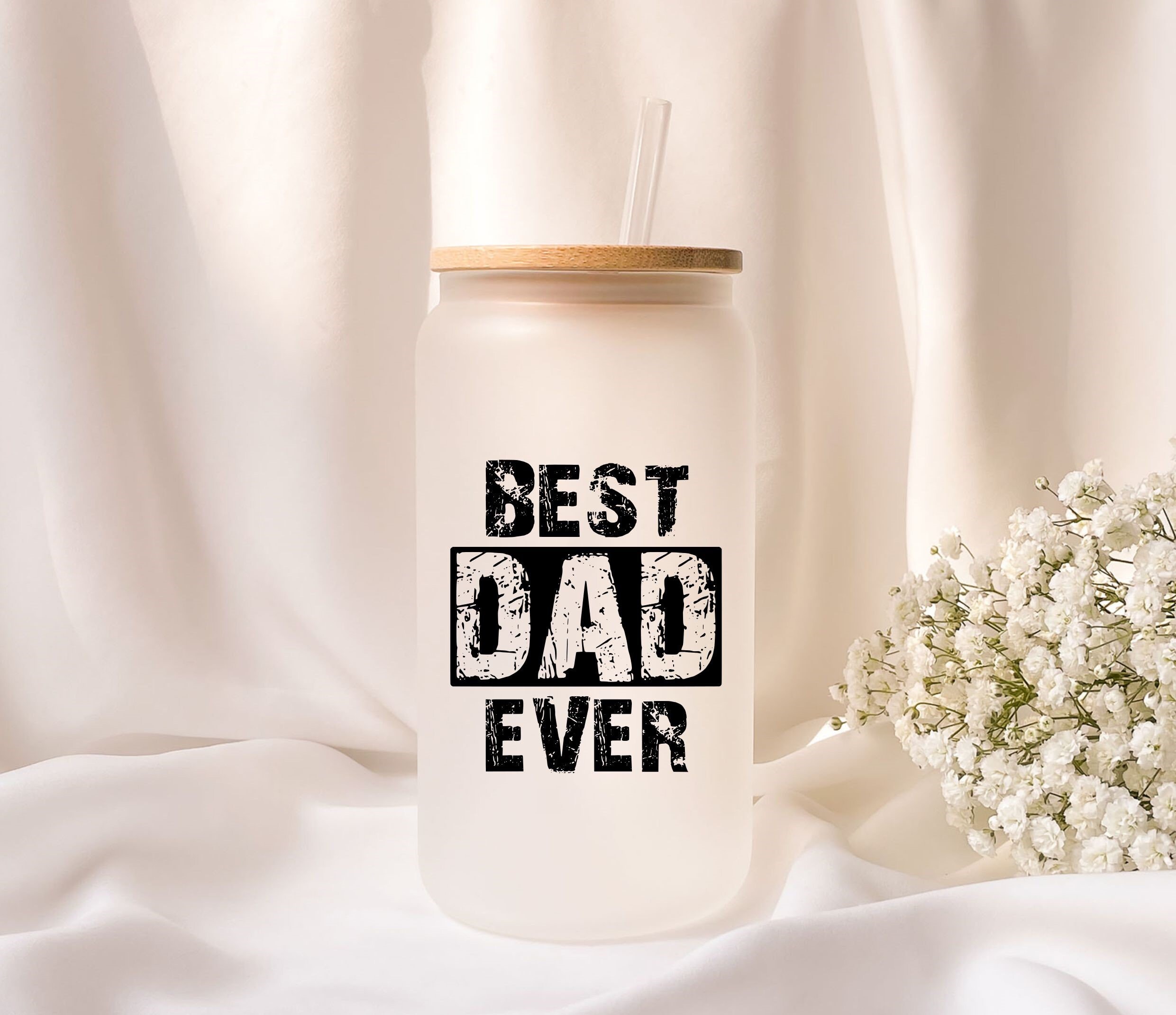Iced coffee glass | Personalized | Frosted glass | BEST DAD EVER