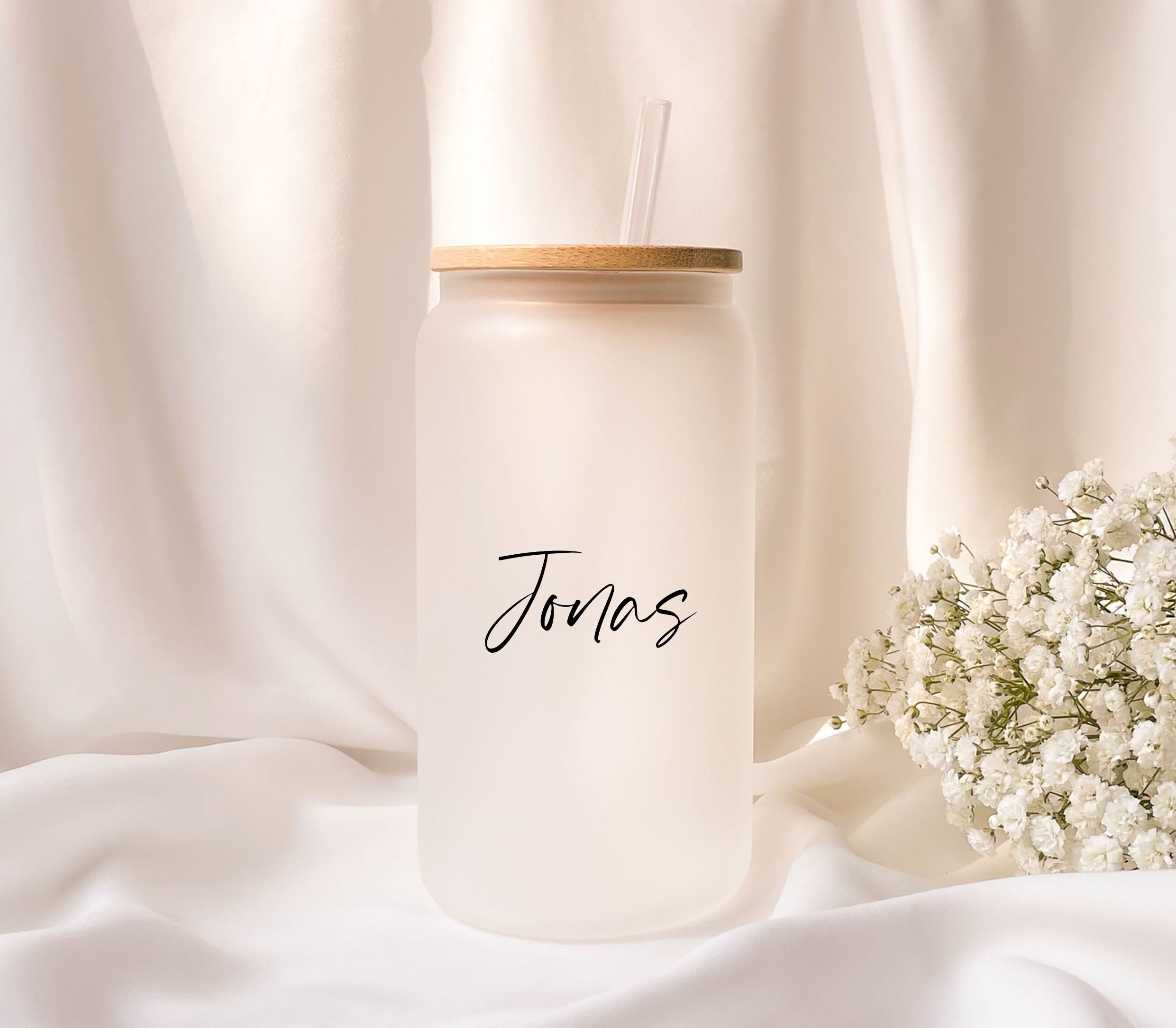 This unique 470ml frosted glass comes with a beautiful light brown bamboo lid and a clear reusable plastic drinking straw. The bamboo lid is equipped with a rubber ring for sealing, which ensures a firm hold and leak protection.