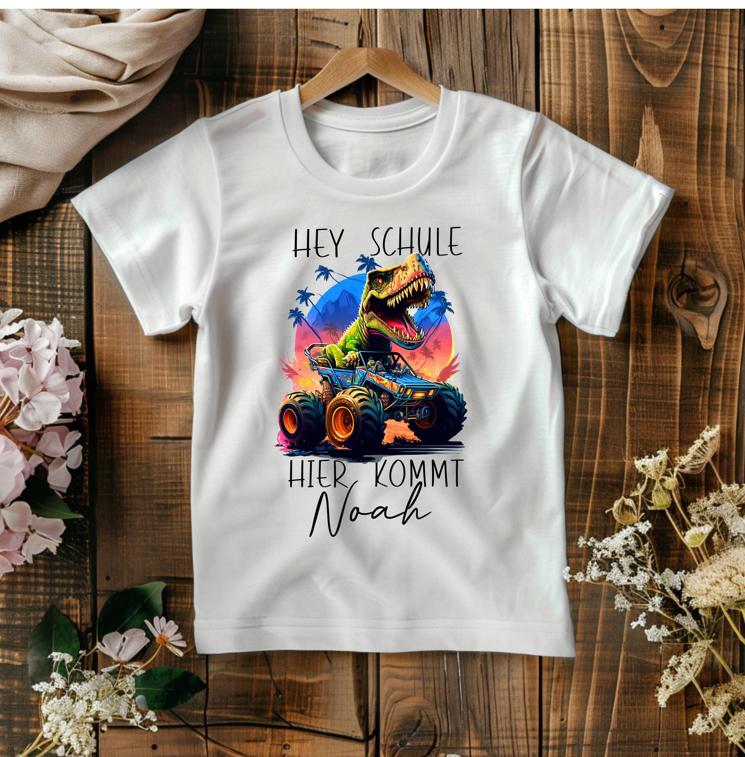 Children's T-shirt school enrollment - Dino Monster Truck | Personalized | Girl Boy with name