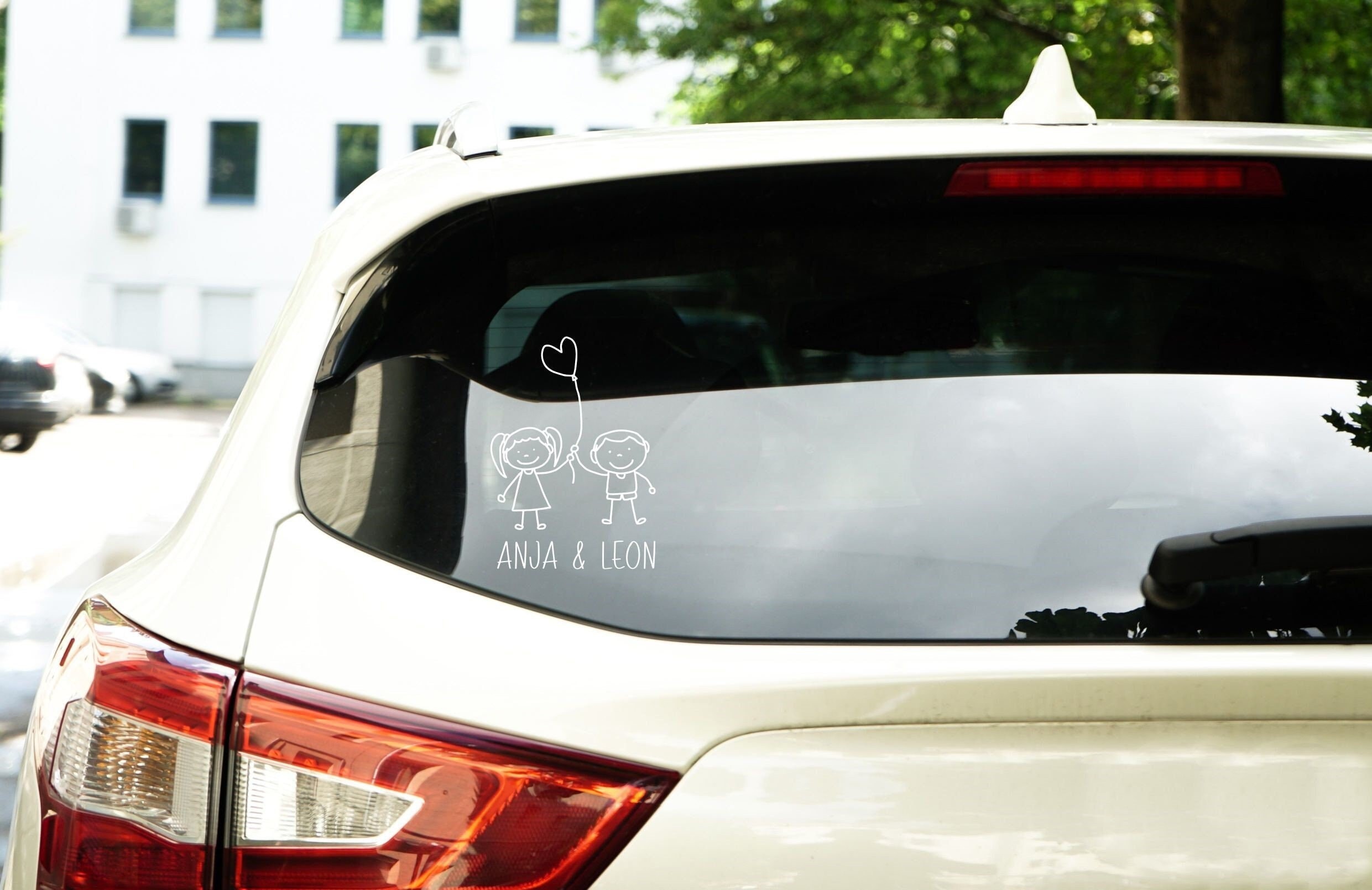 Rear window sticker - child's nameThe sticker is about 18 cm high and about 9 cm wide (depending on the length of the name)It is attached to the outer side of the rear window.