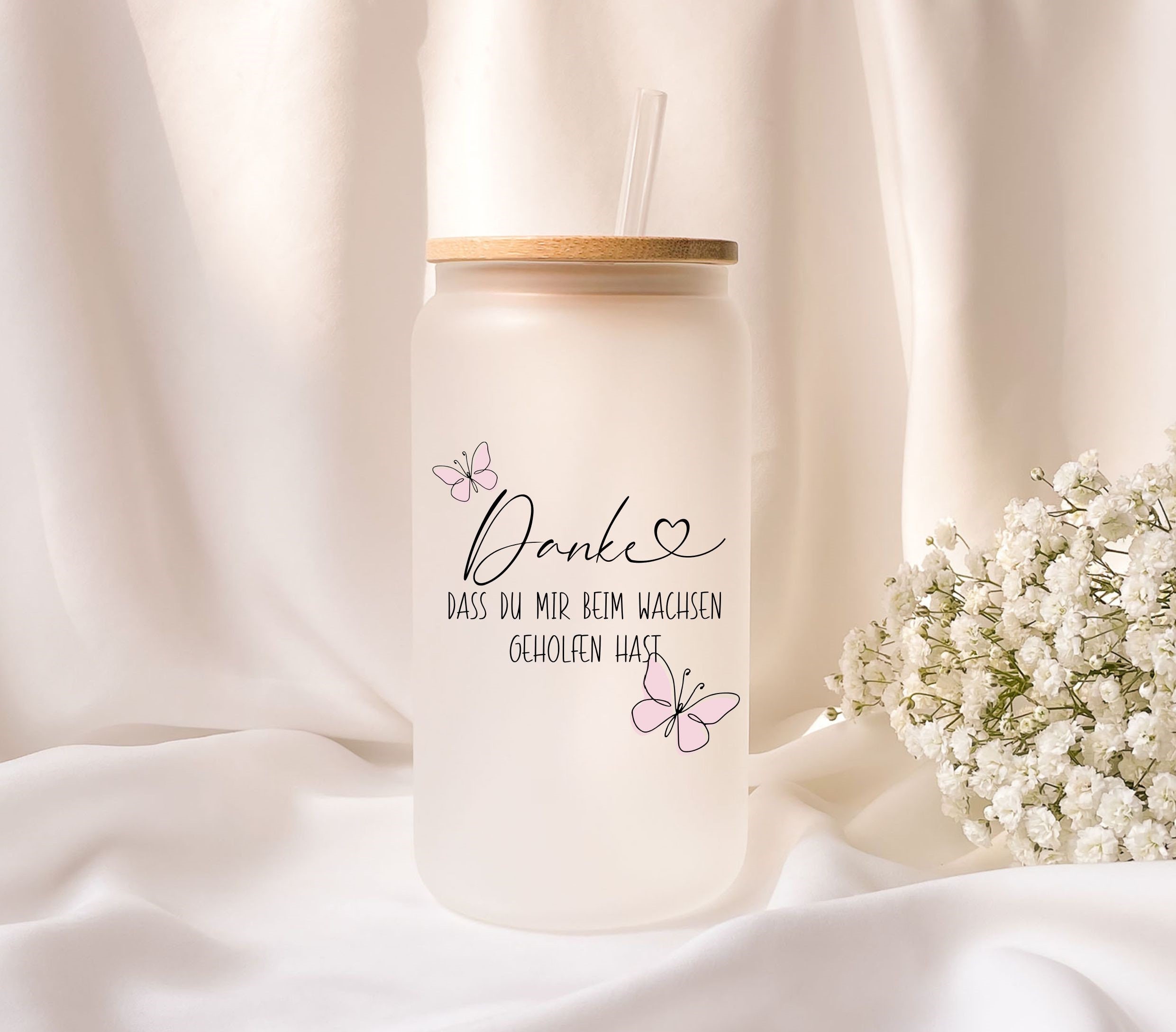 Frosted glass with bamboo lid, personalized for the educator with heart