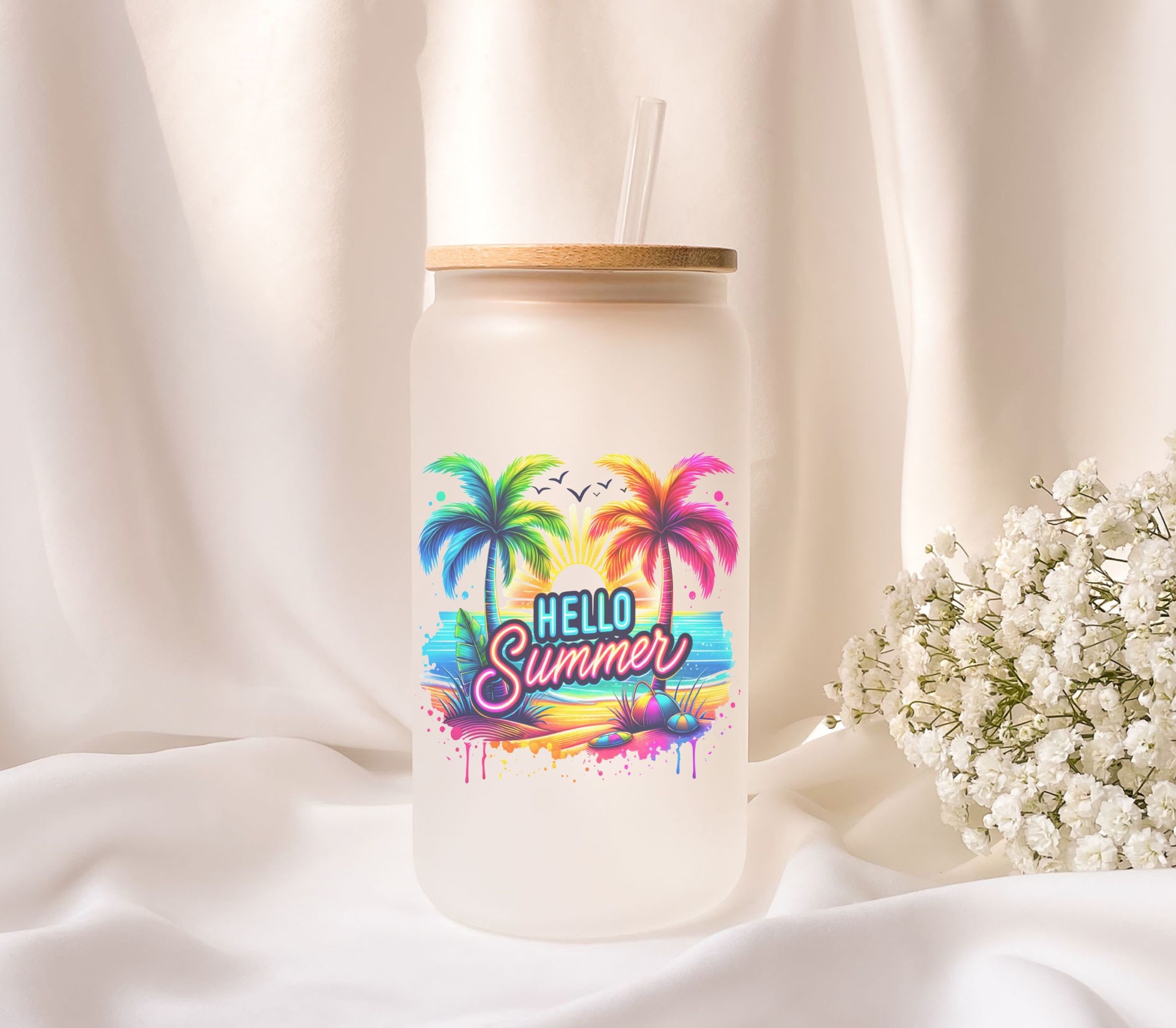 Iced coffee glass | Frosted glass | Gift | ToGo | Lid | Straw | Summer