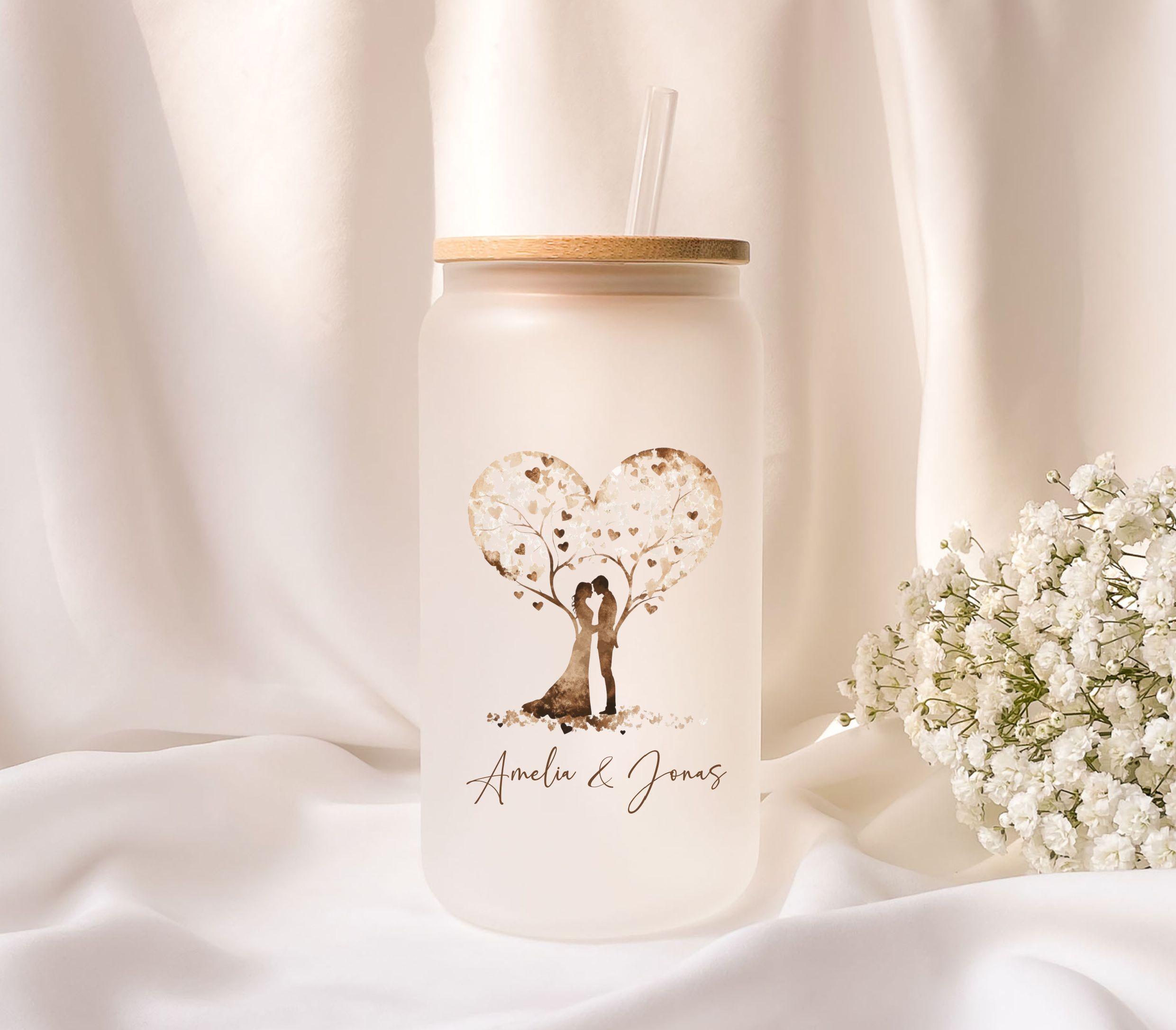 Iced coffee glass | Personalized | Couple - Engagement - Wedding | Frosted glass | Gift