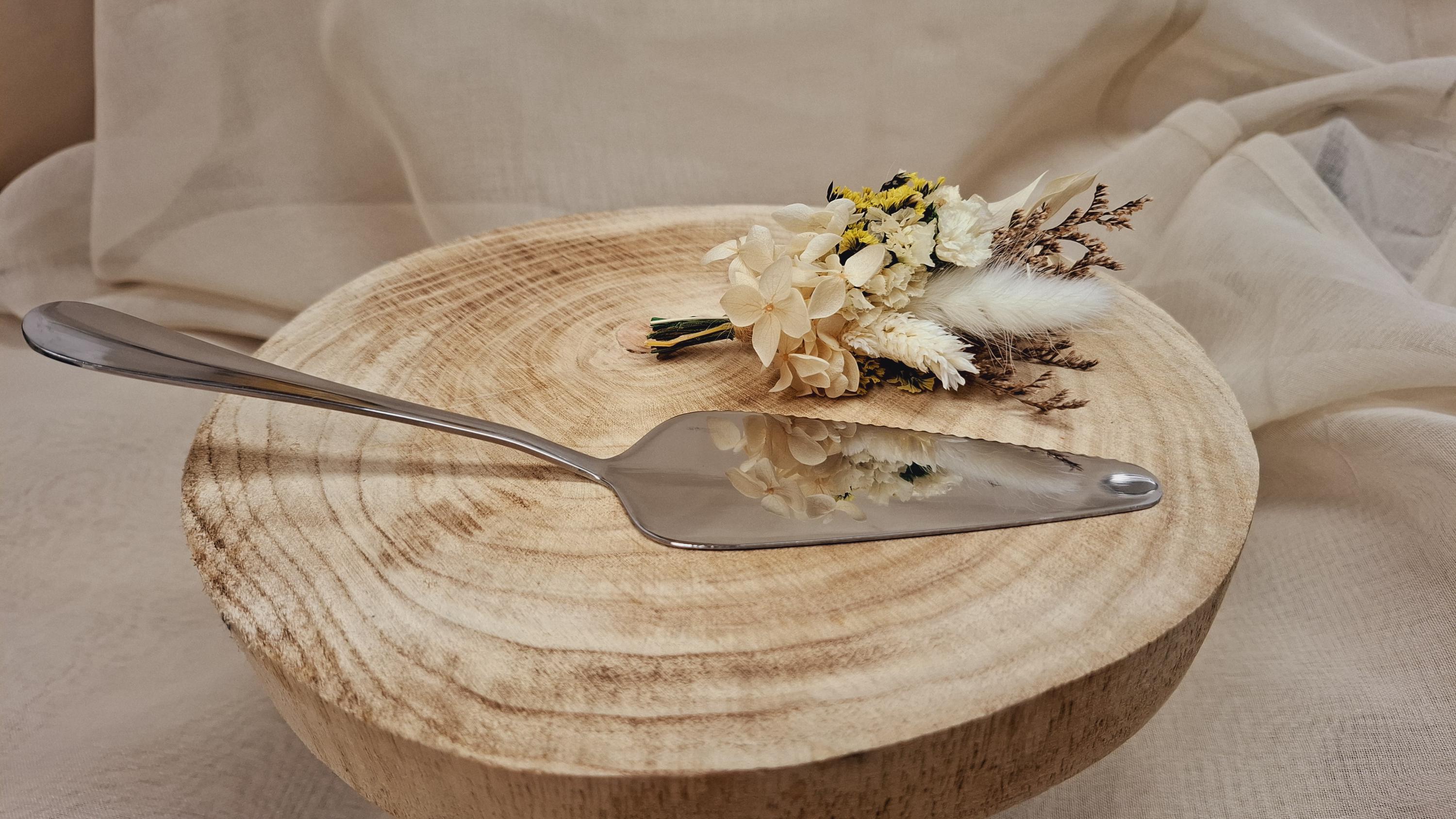 Laser-engraved stainless steel cake serverLength: 22.5 cmWidth: 4.5 cm
