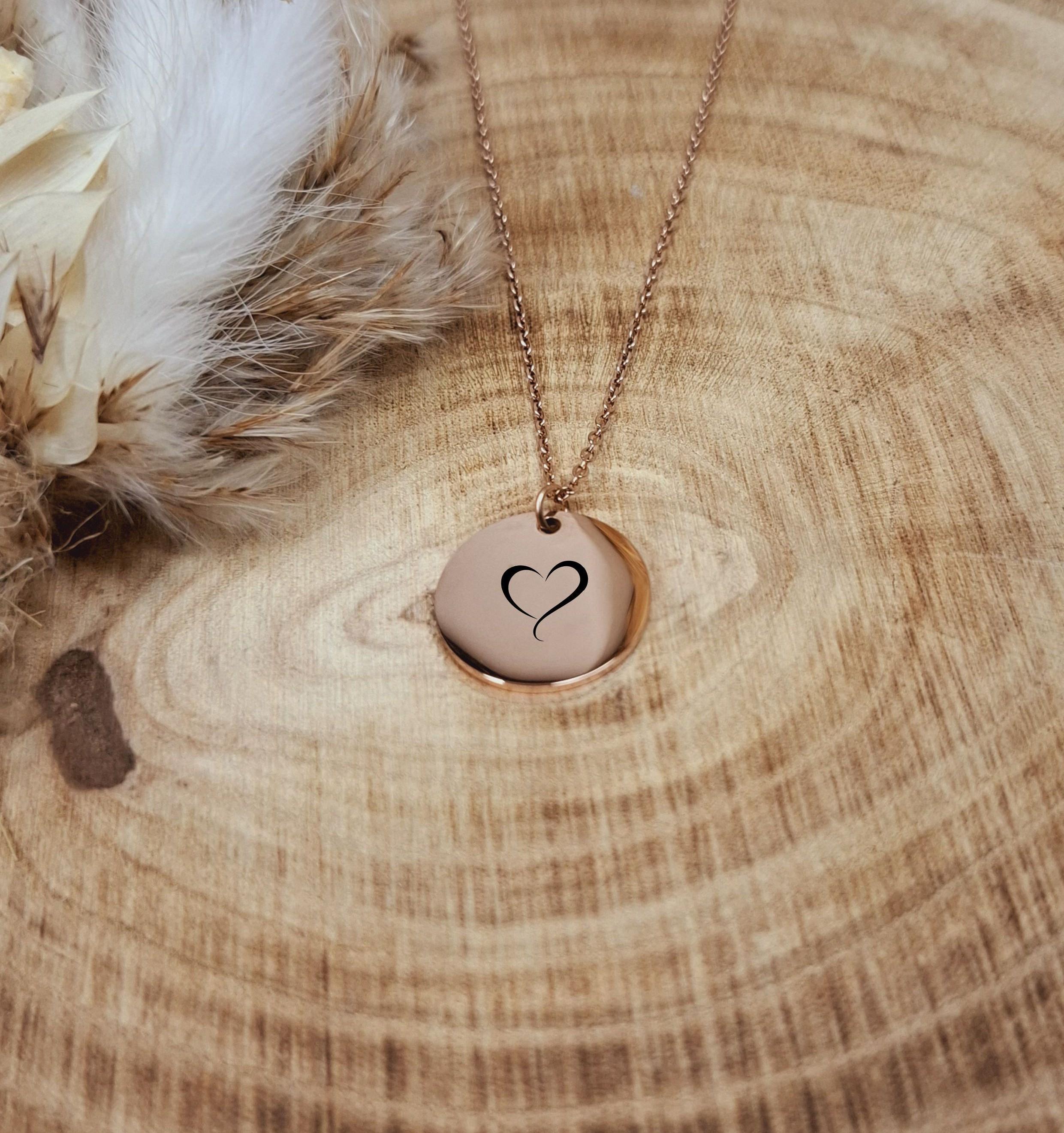 Heart Necklace - Rose, Gold or Silver - Engraving - Fashion Jewelry - Gift