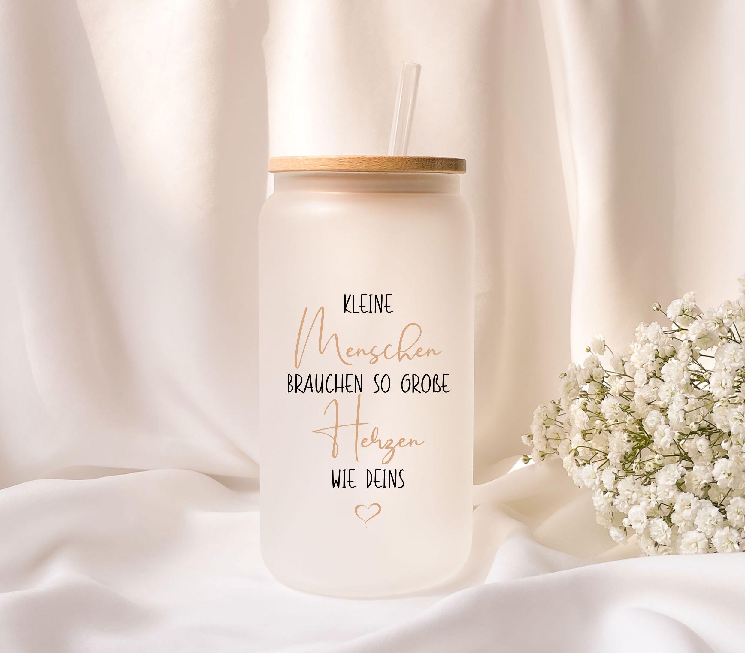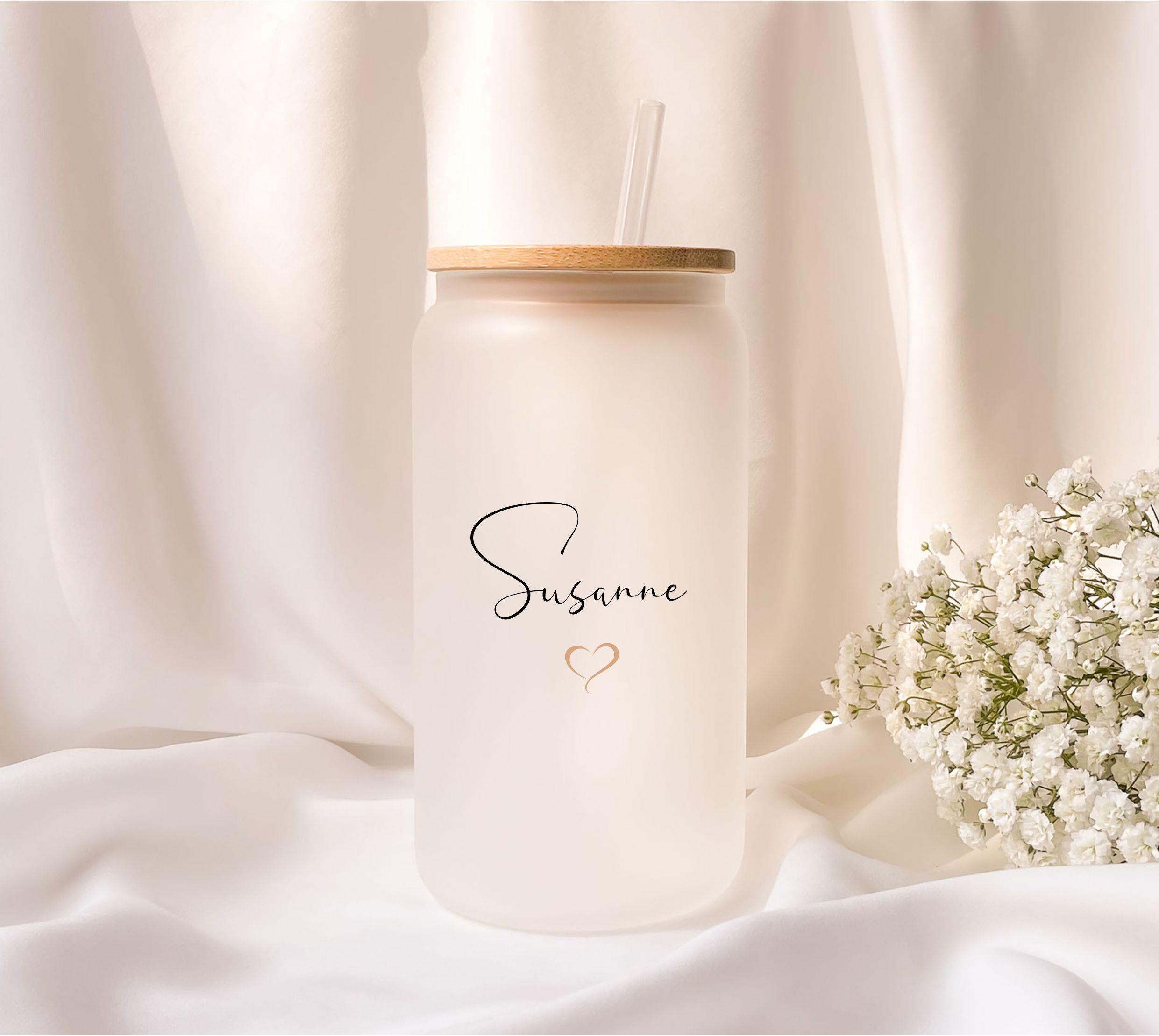 Frosted glass with bamboo lid, personalized