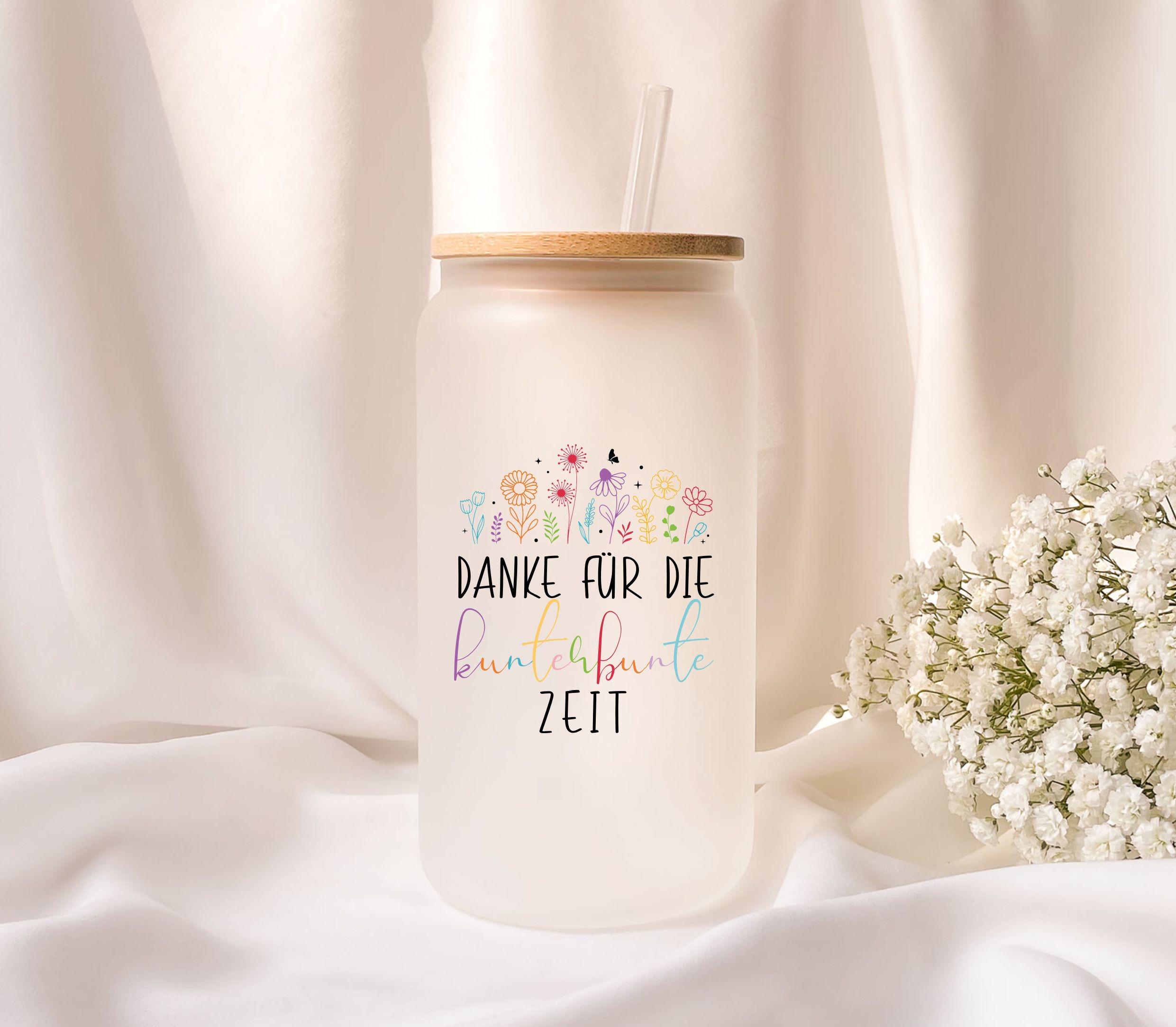 Frosted glass with bamboo lid, personalized for the kindergarten teacher
