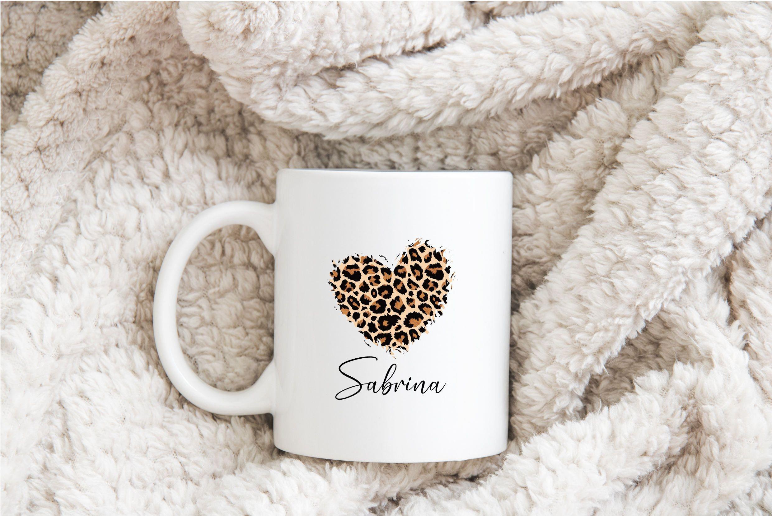 Mug - Heart - Leopard Print - Personalized - Gift -